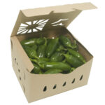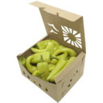 This lightweight Kraft container material is recyclable, biodegradable AND certified compostable! You can replace those plastic hinged clamshells with this earth-friendly container that’s perfect for 12-18 oz of mushrooms (depending on the density) or any kind of peppers or other lightweight produce. Made from natural Kraft paperboard, it’s vented with a strong anchor lock closure to prevent spillage. Great for farmer’s markets and CSA/produce delivery companies. Containers can be labeled using a sticker or by stamping directly onto the container. If you need for a more rigid container or one designed to last several days in a retail refrigerator for microgreens, mushrooms, or heavy produce, we recommend the 3 Quart Reversible.