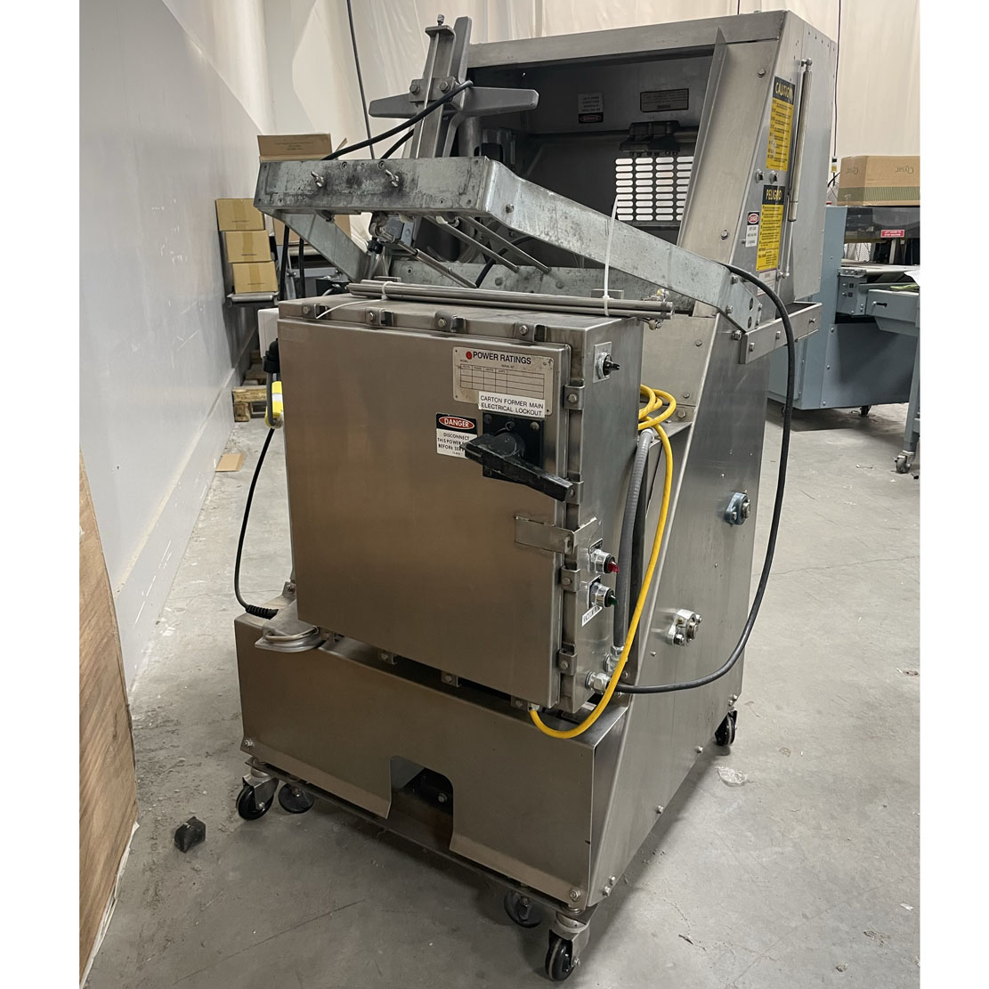 This refurbished Kliklok Jr Machine costs about $30,000 and a new single carton forming head (to form a certain size or sizes) costs about $20,000 each unless we can combine sizes for you. There are also the initial spare parts, labor, crating, installation and on-site training (about $9,000) along with shipping. Approximate purchase total: $59,000.