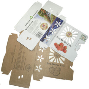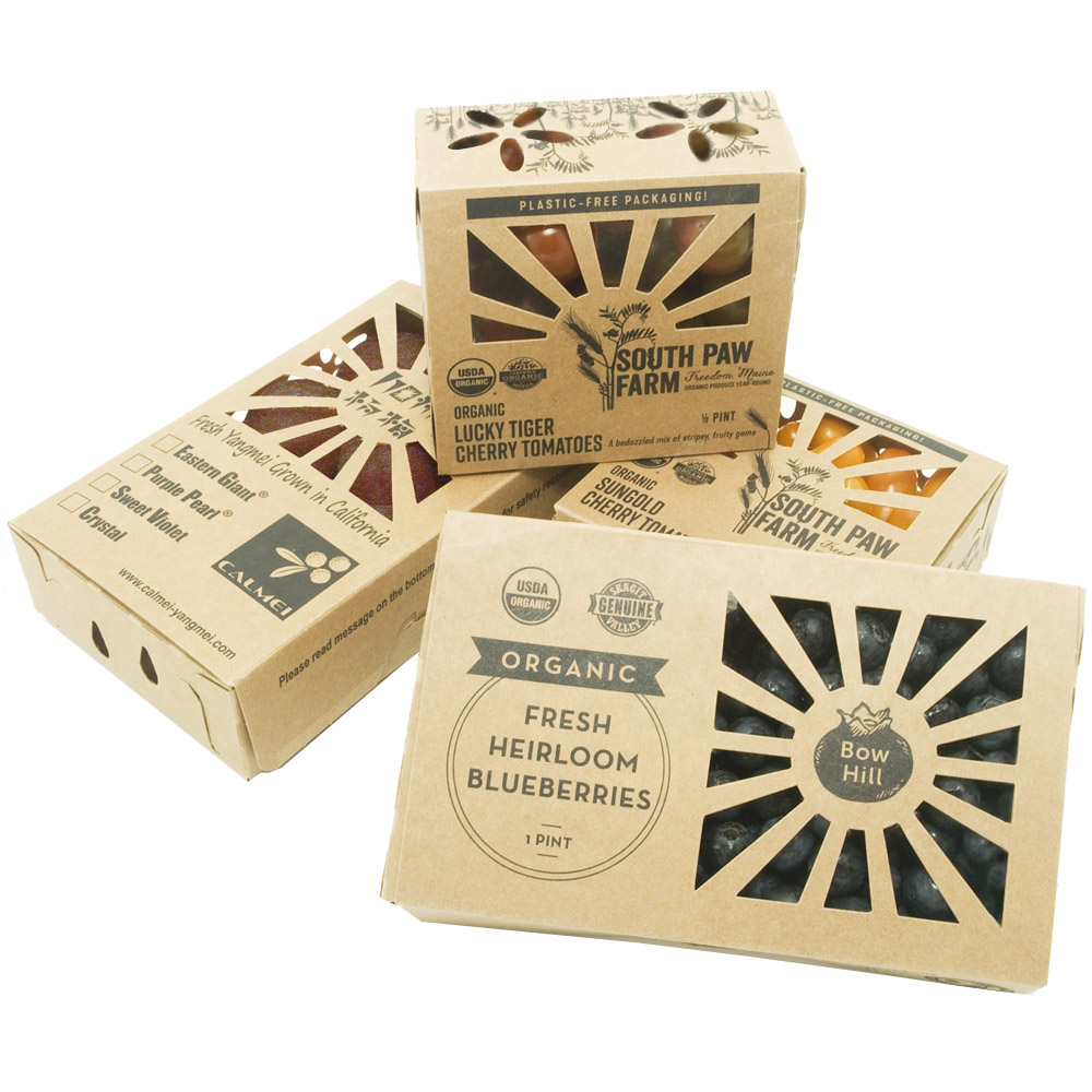 In fact, for just a low one pallet minimum, we can design single or full color custom branded packaging that also cost-effectively eliminates clamshell labels. From the produce container to the master shipper tray, all aspects of the design can reflect your brand, your product and your farm's story. Pallet quantities depend on the Sustainable Produce Container size.